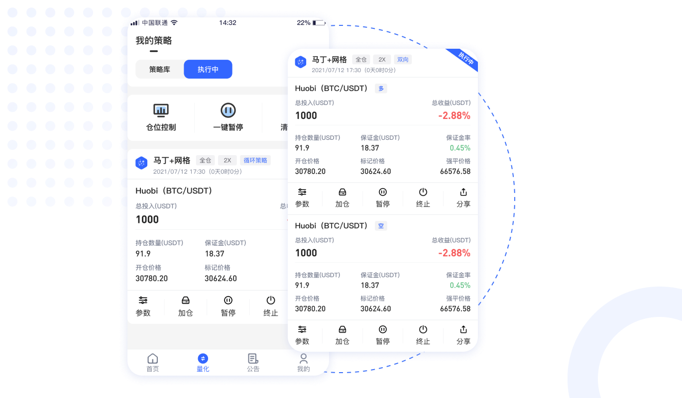 馬丁倍投+網(wǎng)格混合策略、趨勢(shì)補(bǔ)倉(cāng)、尾單補(bǔ)倉(cāng)、風(fēng)險(xiǎn)控制、防瀑布機(jī)制、螺旋式補(bǔ)倉(cāng)、一鍵補(bǔ)倉(cāng),首單加倍。
